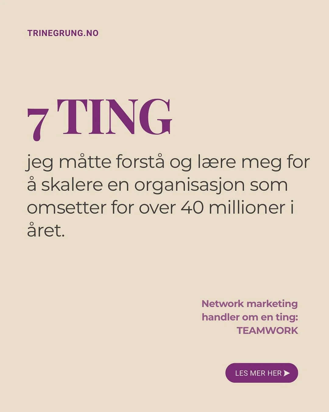 Jeg har 20+ år i kommunikasjon, har bygd en Zinzino-organisasjon som omsetter for over 40 millioner. Jeg gir deg struktur, opplæring og et team som aldri lar deg stå alene.