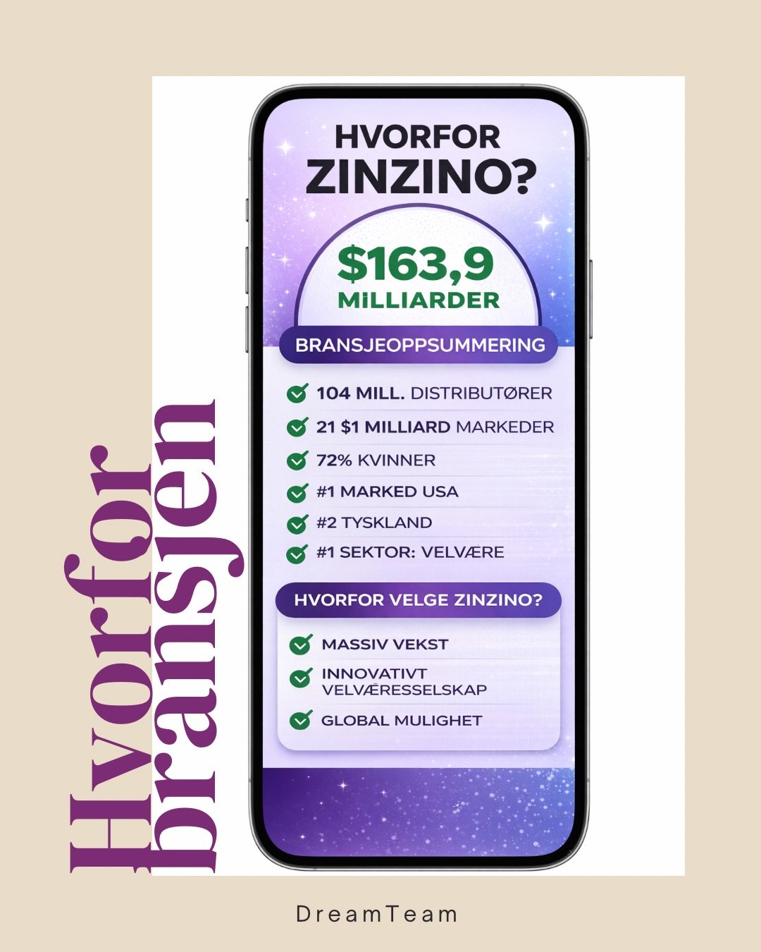 Vi bruker dokumenterte helseprodukter fra Zinzino og bygger team digitalt. Du trenger ikke kunne alt. Du trenger bare viljen til å begynne.