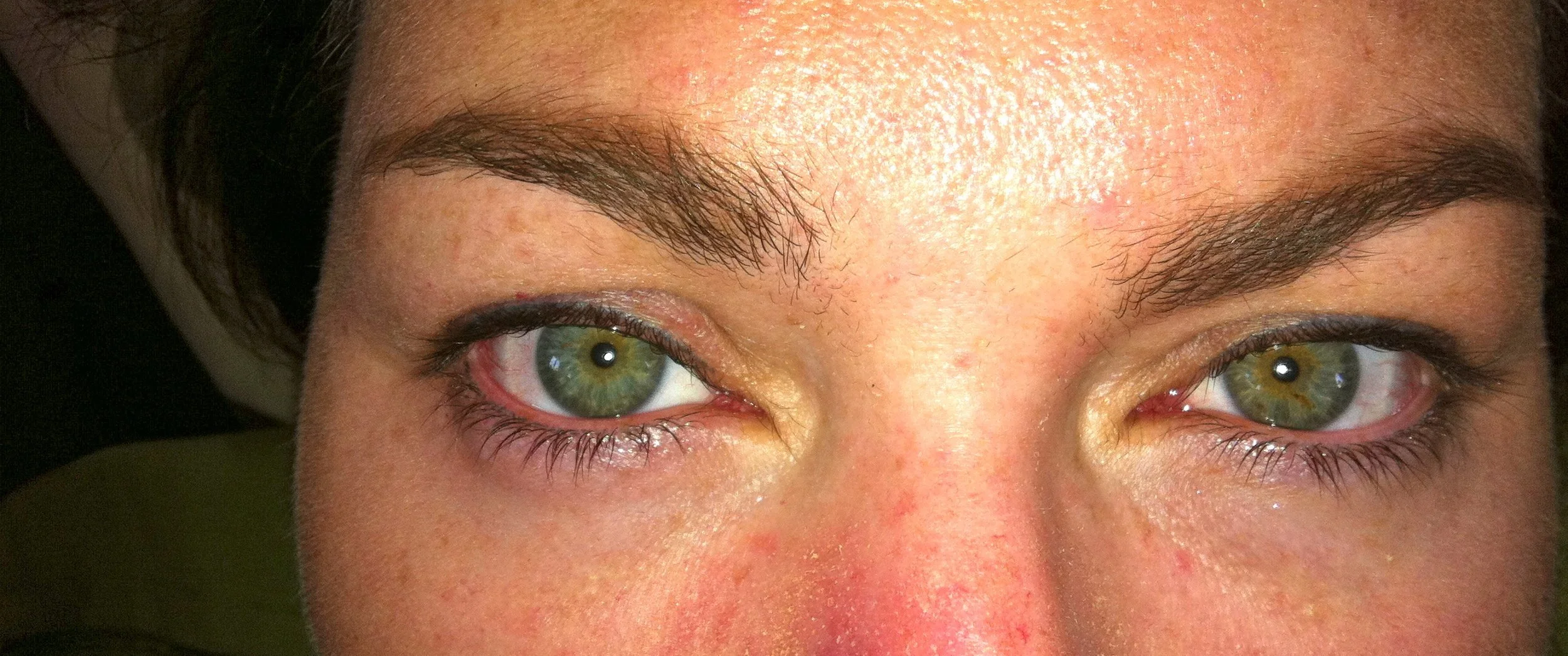 Røde øyne, som renner og klør, samt rennende nese. Skikkelig flatterende på alle måter. Haha.