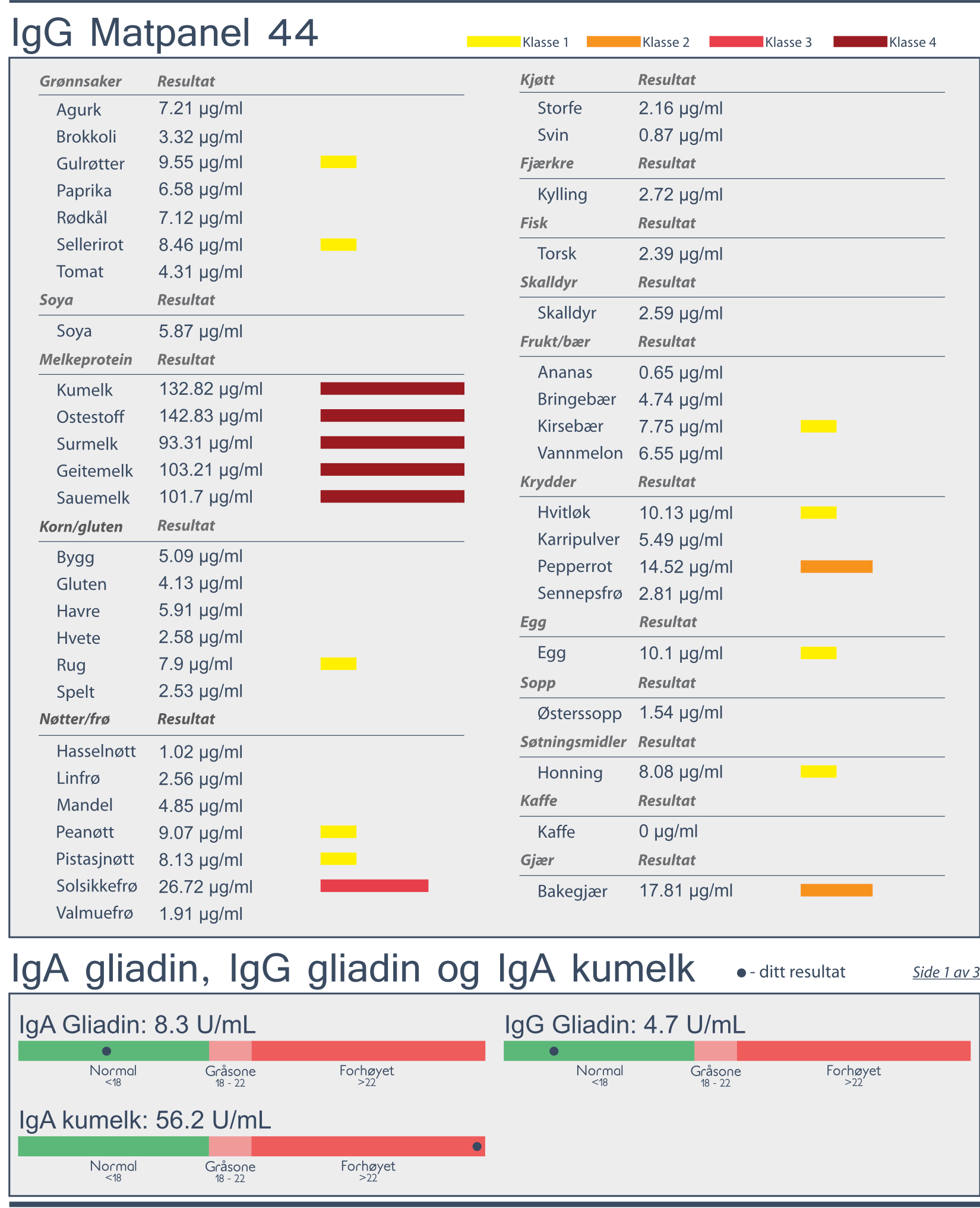 Fem dager før Bodil sendte meg messengermelding hadde jeg på eget initiativ, og etter flere tips fra følgere i sosiale medier, tatt matsensitivitetstest på LAB1 utenfor Oslo. Jeg tok DENNE testen. Før jeg dro og testet meg hadde jeg en lang samtale med Dag Tveiten, Laboratoriesjef og Bioingeniør. Jeg forklarte mine symptomer, hva jeg tenkte problemet var og han forklarte hvilke tester jeg burde ta. En utrolig konstruktiv samtale og SÅ deilig med litt forståelse fra en som kan faget sitt!